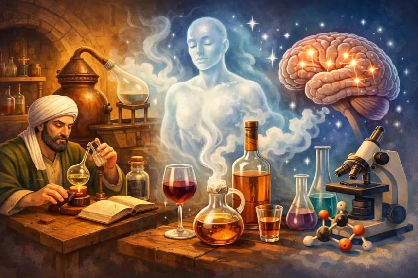 Daí surgiram expressões como spiritus vini, que significava literalmente “o vapor do vinho” ou sua parte volátil. Era uma descrição física do comportamento da substância, não uma metáfora sobre alma ou consciência.