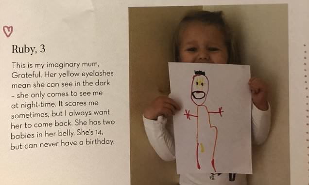 A menina de três anos, cujo nome é Ruby, descreveu seu visitante incomum para um artigo que apresentava vários exemplos de amigos imaginários, assim como desenhos infantis deles.