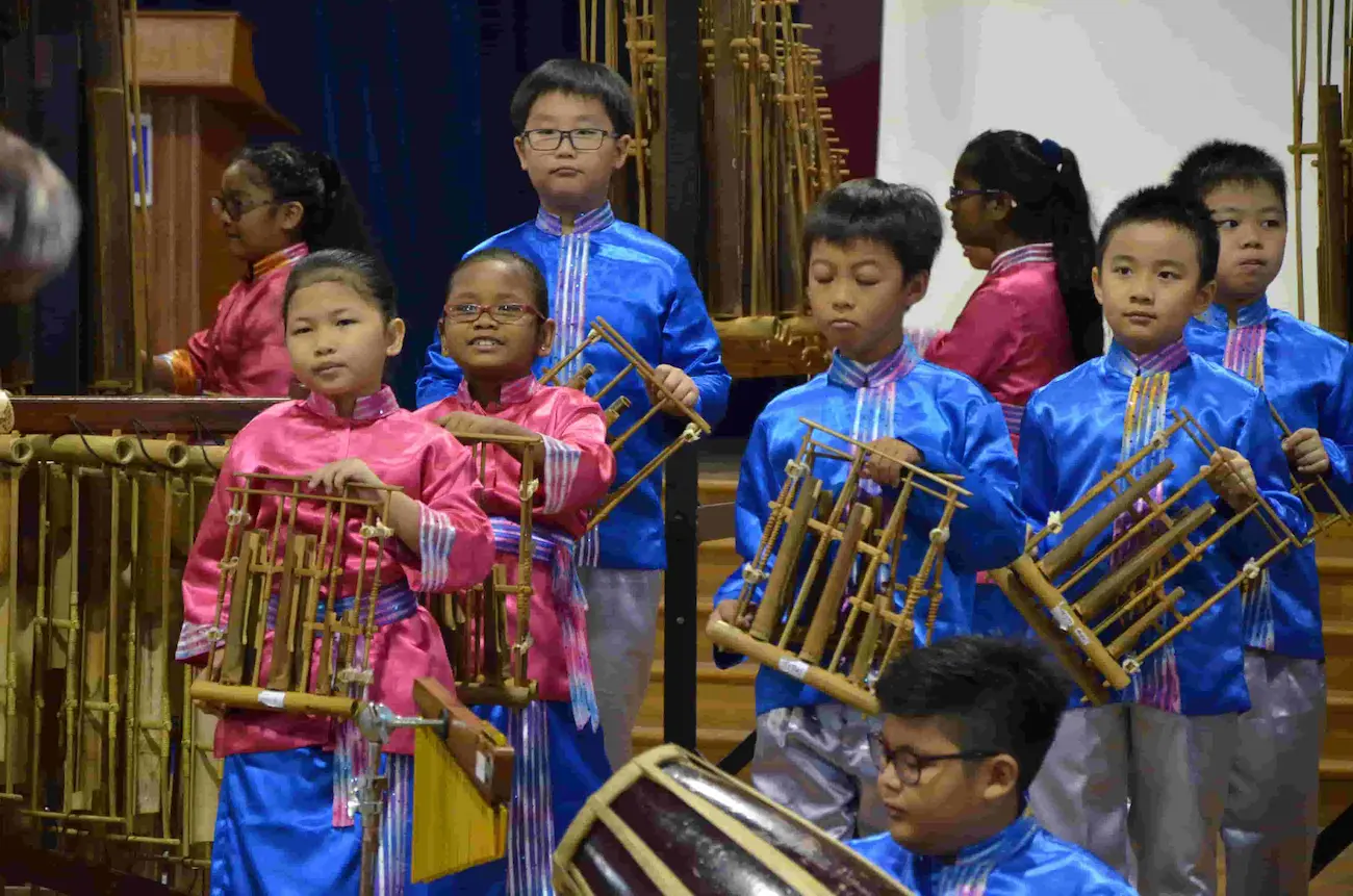 O som edificante de Angklung pode ser ouvido em salas de aula em todo o mundo, pois é uma ótima maneira de os professores apresentarem aos alunos a música e a cultura indonésia.