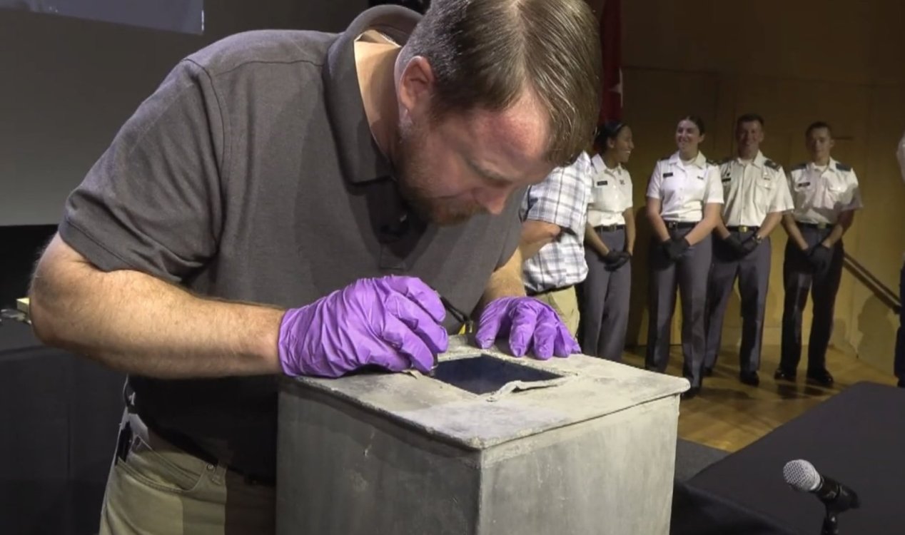O evento, realizado no Auditório Robinson em Thayer Hall e que contou com a presença de vários oficiais militares de alta patente e acadêmicos, foi transmitido ao vivo online, com milhares de pessoas acompanhando ansiosamente para descobrir o que havia dentro.