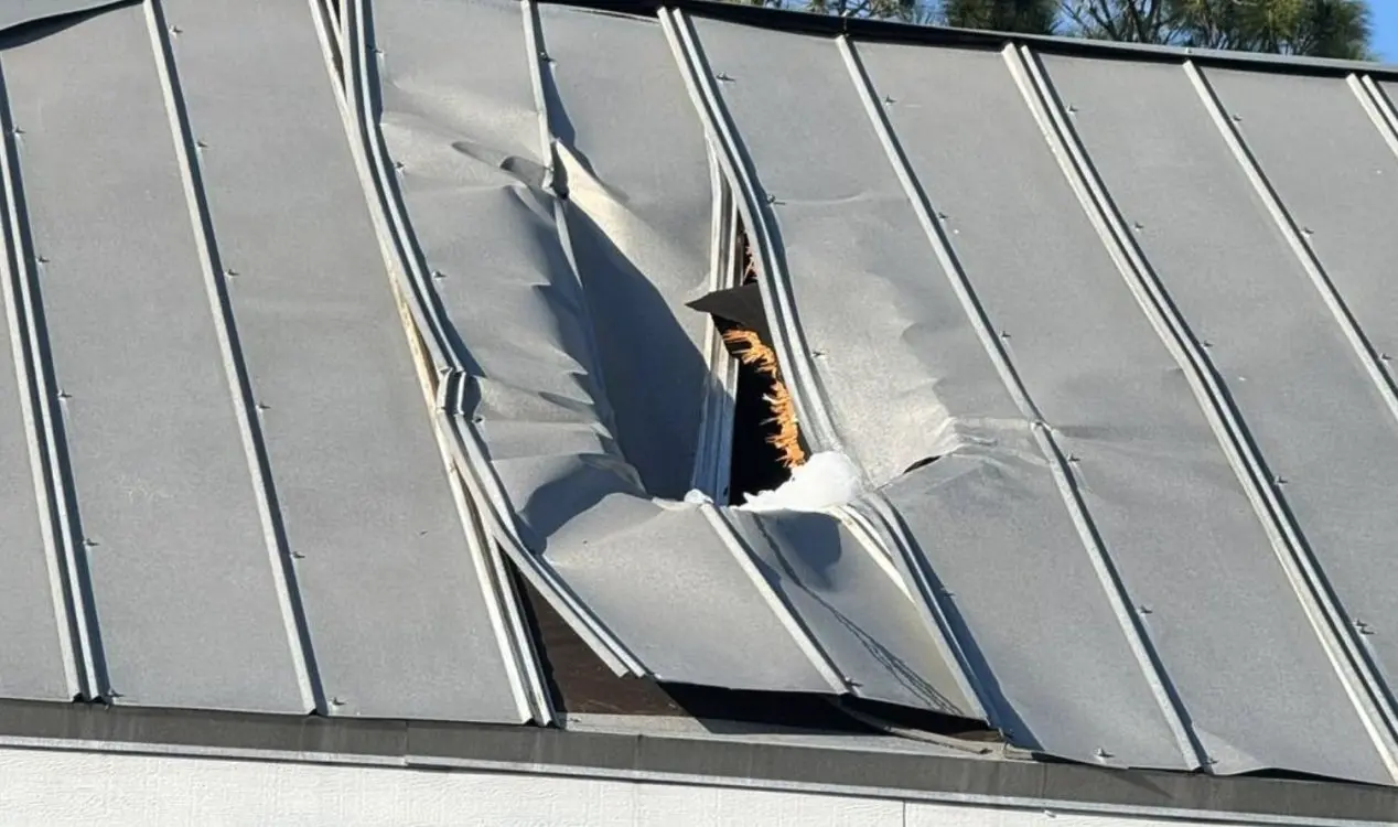 Os bombeiros foram chamados ao local, na área de Seminole Woods, após um morador relatar um barulho enorme e encontrar pedaços de gelo espalhados pela rua. Ao chegarem, encontraram o telhado da casa perfurado e fragmentos de gelo dentro de um dos cômodos.