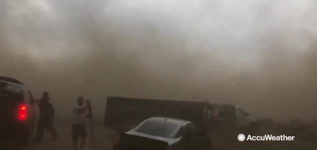 Mantendo sua câmera rolando o tempo todo, Timmer conseguiu capturar a experiência insana de estar preso dentro da massa rodopiante de poeira, sujeira e detritos.