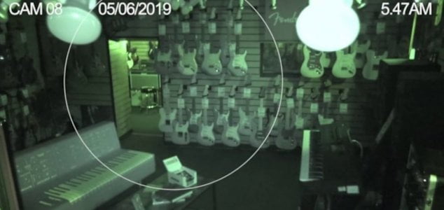 Depois de verificar as imagens do circuito interno, eles perceberam que duas das guitarras penduradas na loja começaram a balançar por conta própria, embora as outras guitarras ao lado delas tivessem permanecido paradas.