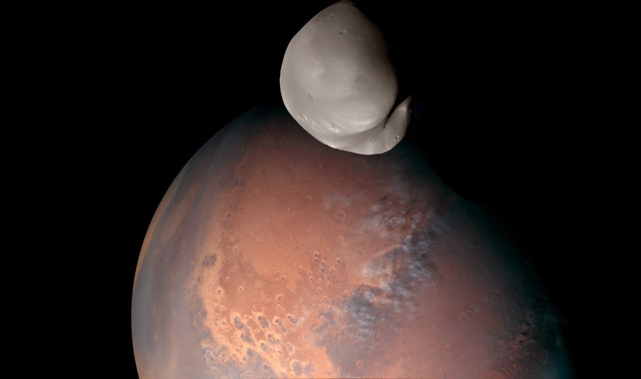 Sonda dos Emirados Árabes captura imagens inéditas da lua marciana Deimos