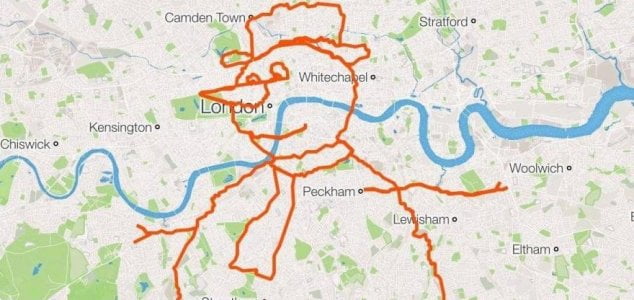 A técnica, que cria o que se tornou conhecido como ‘Strava art’, tem sido usada por vários entusiastas para criar desenhos virtuais com base em rotas de mapas reais com precisão.