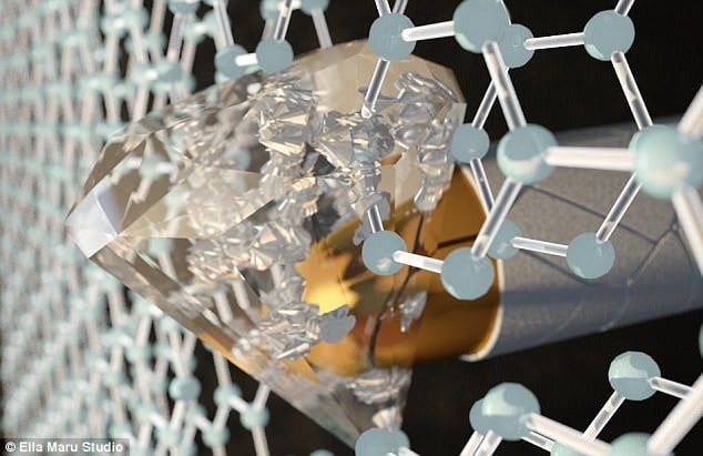Conhecido como diamene, o material consiste em duas folhas de grafeno – um “material maravilhoso” recentemente desenvolvido que é até 200 vezes mais forte do que o aço mais forte.
