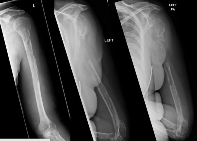 Um raio-X inicialmente revelou uma lesão em seu úmero, sugerindo que ela pode ter câncer, entretanto seus resultados de biópsia foram inconclusivos.