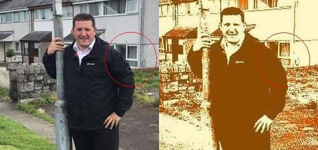 Quando Jason Wayne Parry tirou uma foto recentemente, ele não percebeu o que se escondia atrás dele.Parry, que é o vereador de Caernarfon, no País de Gales, estava trabalhando em uma campanha para destacar o problema da confusão de cães deixada na rua quando a fotografia foi tirada.