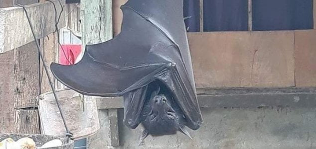 Por um lado, a imagem não é nova – ela já apareceu online antes. Em segundo lugar, o morcego, embora enorme, não é do tamanho de um ser humano adulto. Em vez disso, é apenas a envergadura que mede 5 pés de diâmetro.