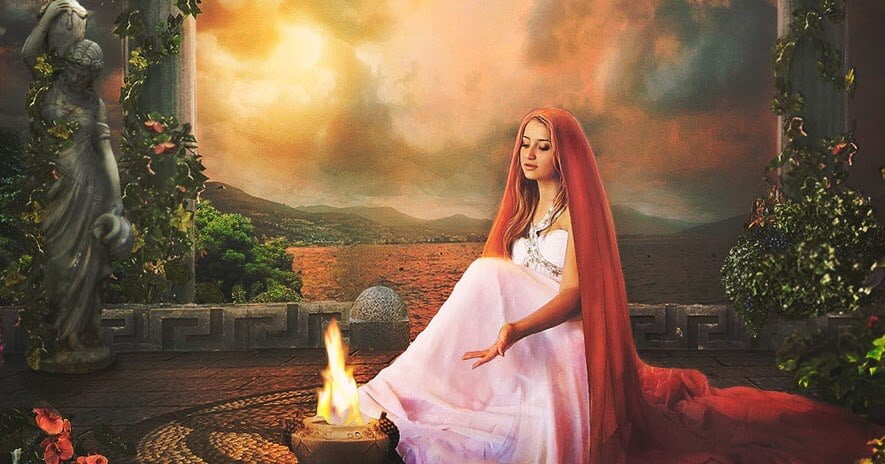 Héstia é considerada a deusa dos laços familiares e é a personificação da lareira: representada, por exemplo, por lareiras em altares e nos centros das cidades. É uma deusa casta: conseguiu autorização para permanecer virgem por toda a eternidade, ignorando os cortejos de Poseidon, por exemplo.