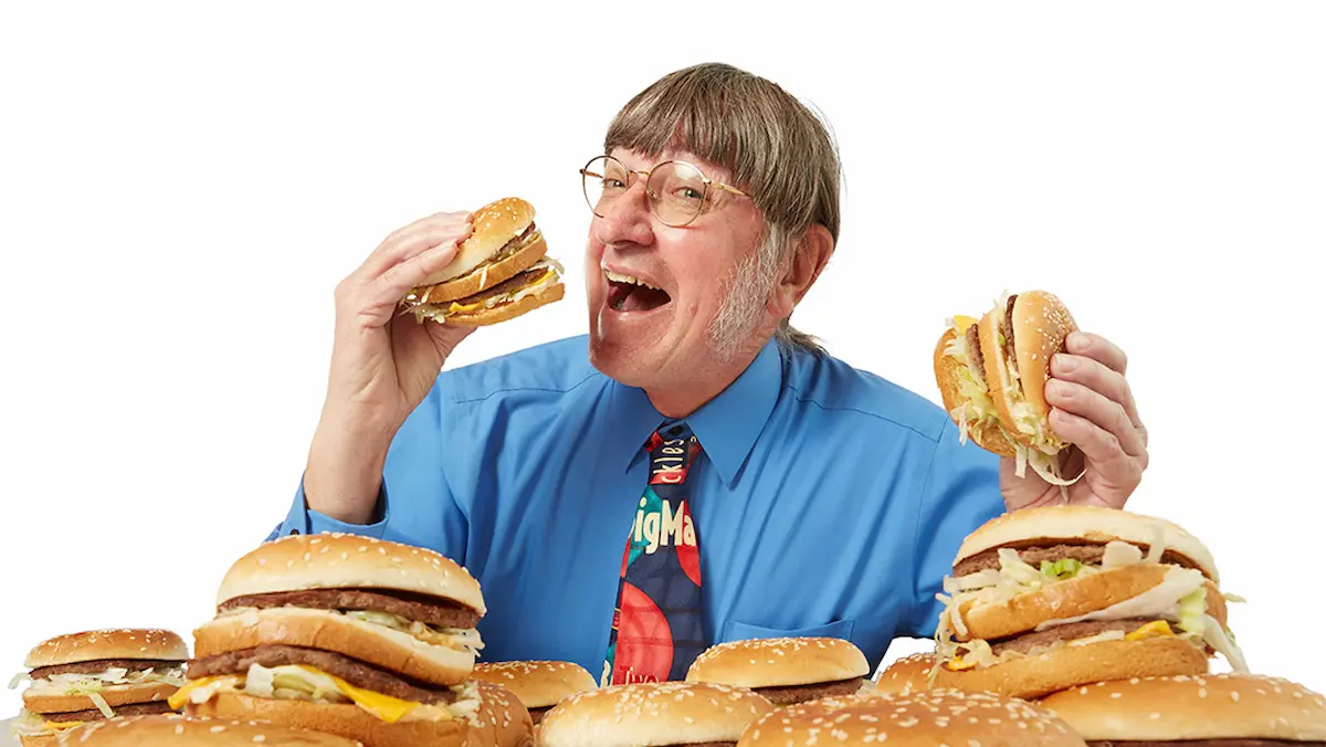 O Guinness World Records acaba de confirmar: ele é o recordista mundial de Big Macs consumidos na vida — e o número é tão absurdo que chega a dar tontura: mais de 35.000 hambúrgueres!