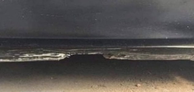 À primeira vista, pode parecer nada mais do que uma cena de praia tomada depois do anoitecer, em uma inspeção mais detalhada, algo não está certo.Como se vê, a fotografia não mostra uma linha costeira, mas na verdade é uma imagem em close da parte inferior de um carro, com o ‘céu’ sendo a pintura e a ‘praia’ sendo a sombra do carro.