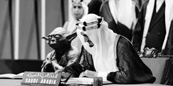 Uma imagem de Yoda nas Nações Unidas acabou de alguma forma em um livro de história na Arábia Saudita.