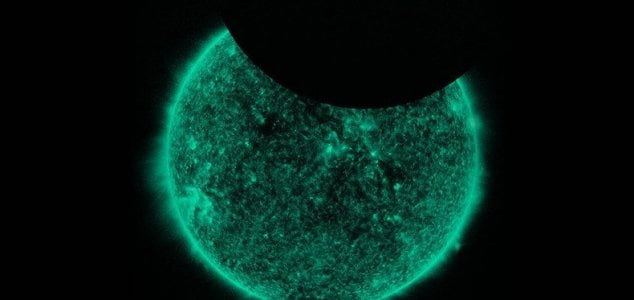“A sombra da lua obstrui a visão constante do Sol de SDO, e a borda da sombra é distinta, já que a Lua não tem atmosfera que distorça a luz solar”, escreveu a NASA.