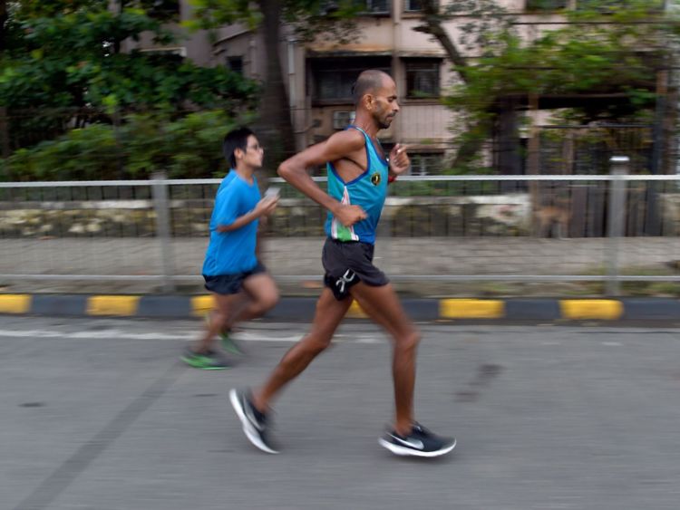 O corredor de ultra maratona estava em curso para conseguir o impossível após passar últimos três meses correndo 100 km por dia, todos os dias, entre as favelas de Mumbai e o distrito de negócios.