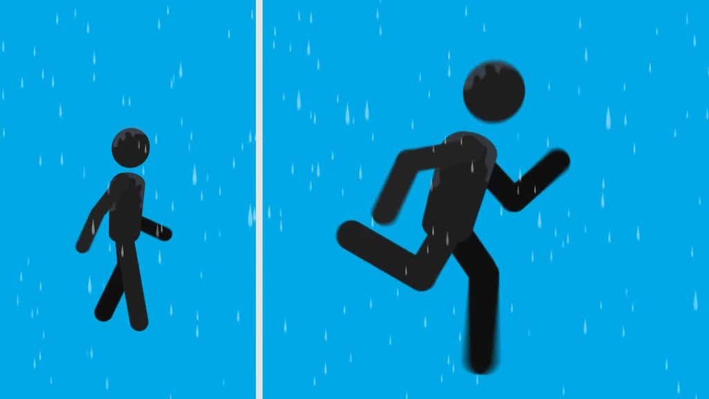 Isso se baseia na ideia de que, embora você passe menos tempo na chuva se chegar mais rápido ao seu destino, avançar rapidamente pela chuva que está caindo à sua frente significa que você atingirá mais gotas do que se estivesse andando.