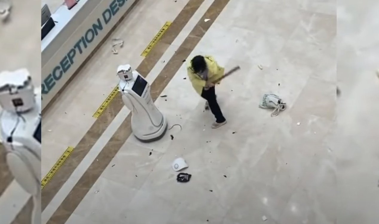 Uma mulher foi flagrada pelas câmeras de segurança de um hospital tentando agredir um robô com um grande pedaço de madeira. Cada vez mais, os robôs estão substituindo humanos em diversas áreas, incluindo em hospitais na China, onde recepcionistas tradicionais foram substituídos por robôs.