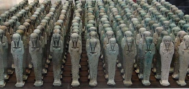 Entre os artefatos descobertos no local, havia até 10.000 estatuetas shabti. Criadas a partir de um tipo de cerâmica vitrificada conhecida como faiança, essas figuras eram uma parte importante das práticas funerárias egípcias na época, pois acreditava-se que elas serviriam os mortos na vida após a morte.