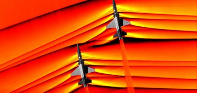 As fotografias mostram, pela primeira vez, como as ondas de choque de duas aeronaves separadas interagem.