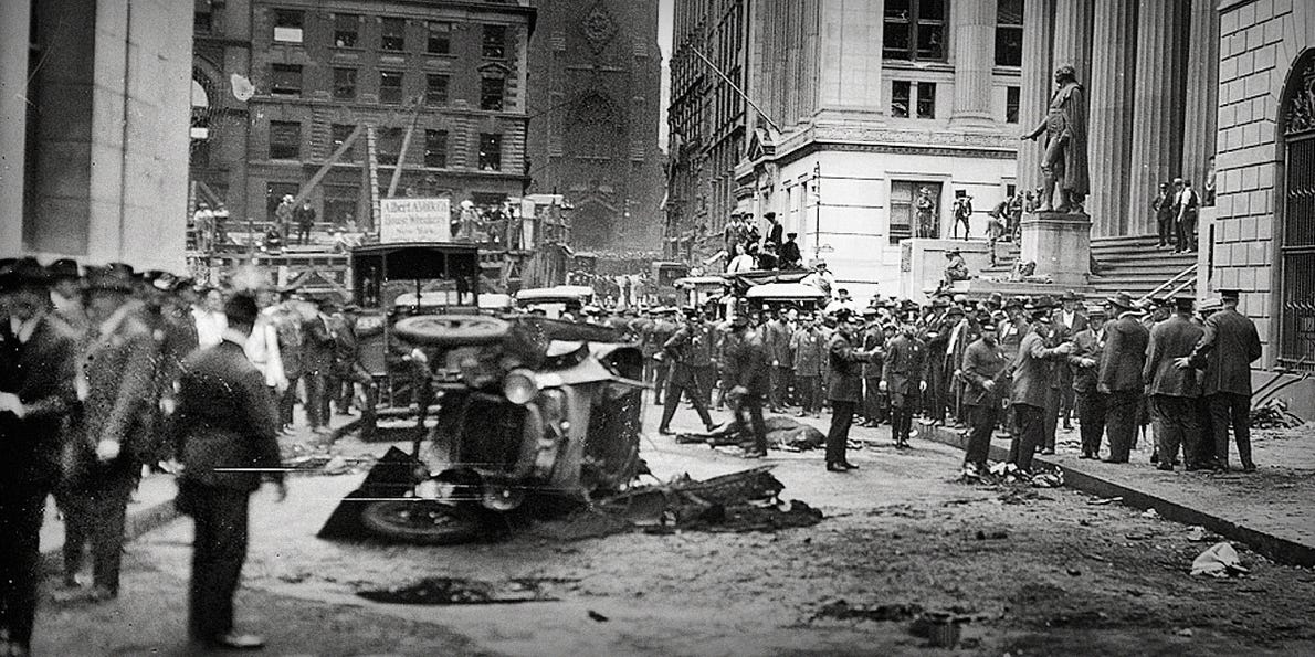 Um século atrás, em 16 de setembro de 1920 às 12:01, uma bomba de dinamite foi lançada de uma carruagem puxada por cavalos e explodiu perto dos escritórios do famoso financista JP Morgan.