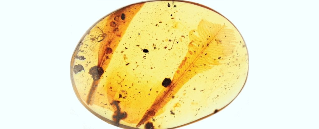 Os cientistas descobriram algumas penas bastante incomuns dentro de pedaços de âmbar que datam de 100 milhões de anos.