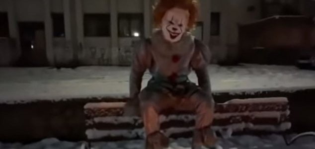 Em um vídeo, o brincalhão pode ser visto sentado em um banco do parque depois do anoitecer, com um círculo ritualístico de velas em volta de alguém deitado na calçada. Quando um pedestre desavisado acontece, Pennywise se levanta lentamente e começa a perseguir o homem aterrorizado pela estrada.