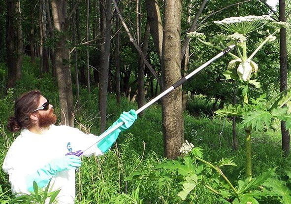 Originalmente introduzido na Grã-Bretanha como uma planta ornamental no século 19, a hogweed gigante é particularmente tóxica e sua seiva pode causar queimaduras graves, bolhas e até mesmo cegueira.