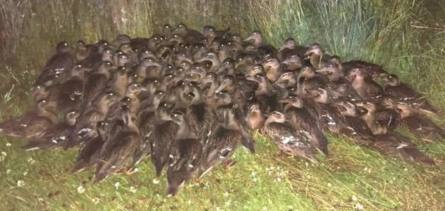 “Fomos chamados para o B935, perto de Forteviot, às 23h30 do sábado”, disse um porta-voz. “Havia 100 patinhos perto do acostamento e eles foram levados.”Ainda não está claro de onde os pássaros vieram ou como eles acabaram lá em um grupo tão grande.