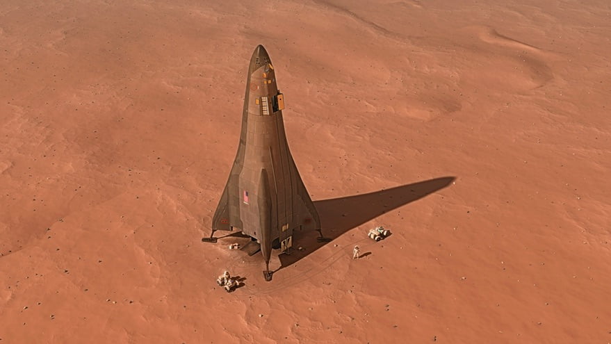 Usando retropropulsão supersônica, este veículo tripulado seria capaz de se separar da estação espacial e se dirigir para a superfície de Marte para missões com duração de até duas semanas.