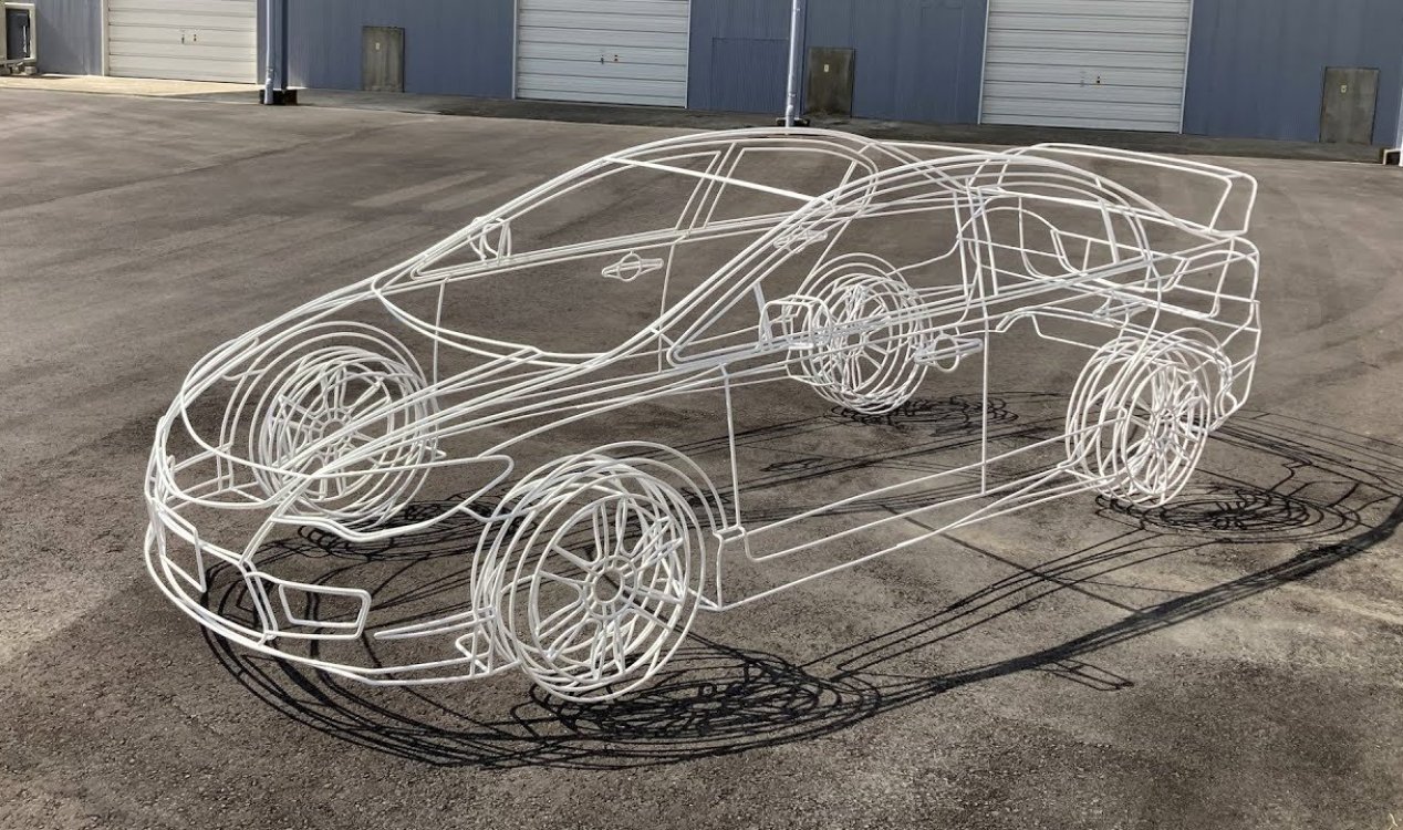 Esta incrível escultura de um carro em arame parece mais com gráficos…