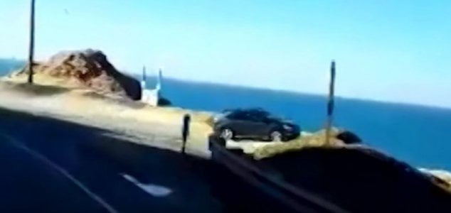 SUV dirige sobre a borda do penhasco e desaparece