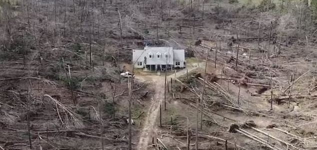 Talvez a coisa mais surpreendente de todas, no entanto, tenha sido uma única casa que de alguma forma conseguiu permanecer intocada, apesar de todas as árvores ao redor serem derrubadas pelo tornado.