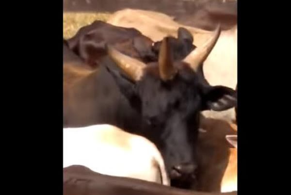 A filmagem mostra a vaca – todos os três chifres claramente visíveis – perambulando entre os seus homólogos de dois chifres, enquanto aparentemente ninguém percebe sua anormalidade.